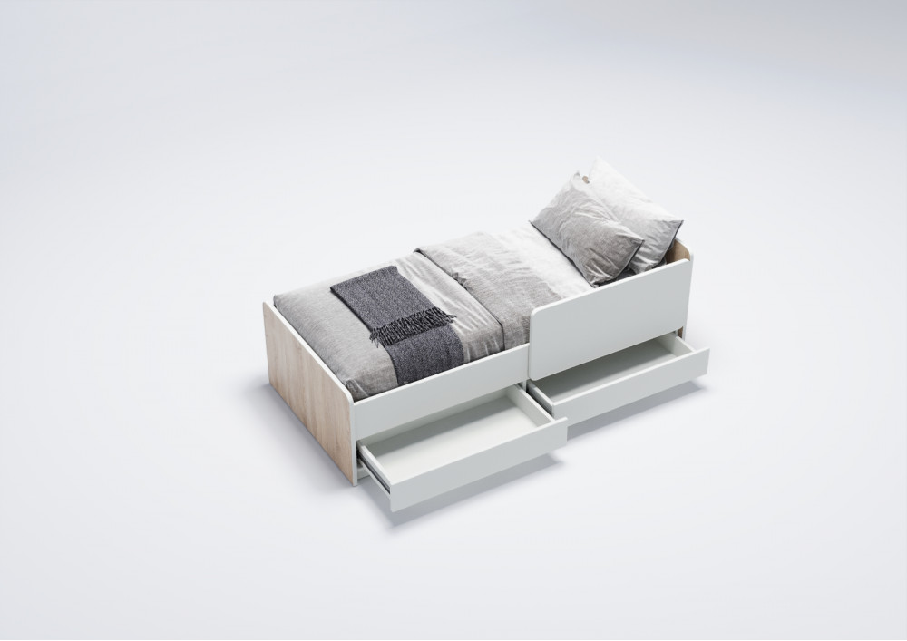 Две выдвижных вместительных ящика, оборудованных телескопическими направляющими с фиксаторами, предоставляют дополнительное пространство для хранения игрушек, одежды и других детских принадлежностей. Это позволяет поддерживать порядок в комнате и облегчает процесс уборки.
