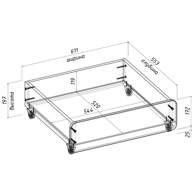 габариты (Д×Ш×В): 611 × 553 × 197