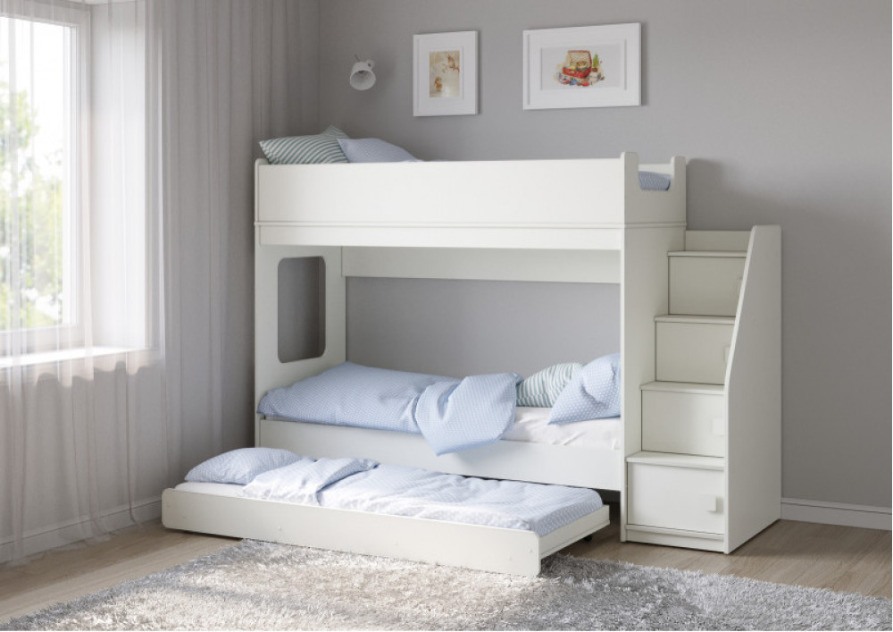 Трехъярусная кровать Легенда D602.3 с ящиком - уникальный комплект для троих детей!